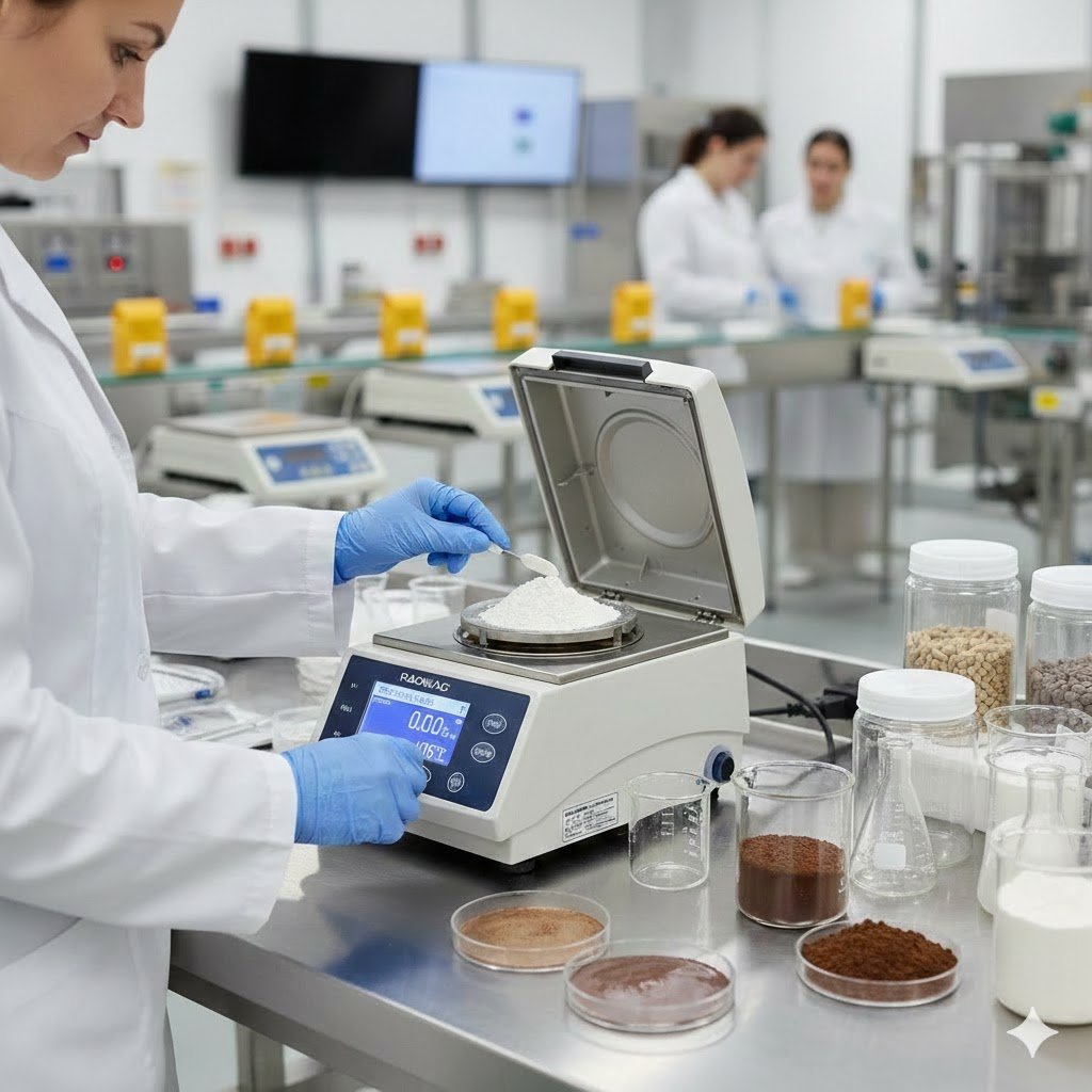 Nem tayin cihazları, un, et, yağ, çikolata, süt tozu, yem ve birçok gıda ürünündeki nem miktarını hızlı ve doğru şekilde belirler.