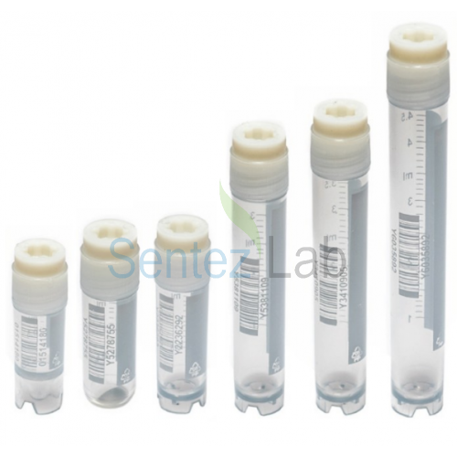 | Kriyo tüpler 1.2, 2, 3, 4 ve 5 mL olmak üzere 5 farklı hacimdedir. Bunlardan 1.2 mL hacimli tüpler haricinde her bir hacim grubunun | |||||||||||||