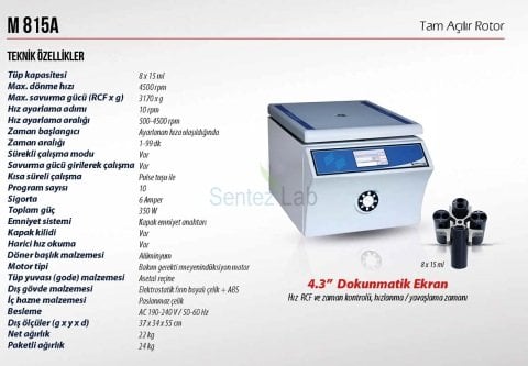 | ELEKTROMAG M815 AII (Açılır Başlık) CGF ve PRP / PRF Uygulama Santrifüjü 4500 rpm / 8 x 15 mL | |||||||||||