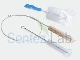 Laboratuvarınızdaki tüp, büret, şişe, erlen, beher, balon benzeri kapların temizlik ve yıkanmaları için ideal yardımcılardır. Temizleme fırça kısmı en üst kalite perlon elyaflarından çok uzun kullanım garantisi ile üretilir. Fırça sapı sağlam fakat yeteri kadar esnek, paslanmaya dayanıklı bükülmüş çelik telden oluşur. Polypropilenden üretilen fırça sapı fırçaların çok kolay ve pratik kullanımlarını garanti eder. Özgün fırça yapısı fırçaların istenilen herhangi bir yere asılabilmelerini ve fırçalara kolay erişimi sağlar. Fırça ucunda yer alan küresel kesimli sünger başlık fırçanın her köşeye ulaşabilmesini ve mükemmel temizliği garanti eder.