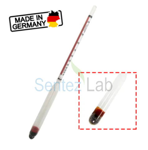 · Camdan yapıla nalkol-metrenin bi rucunda sıvı içinde dik durmasını sağlamak üzere ağırlık , diğer ucunda ise silindirik bir sap bulunmaktadır. · Renkli skala ile daha kolay gözlemleme olanağı sunar.