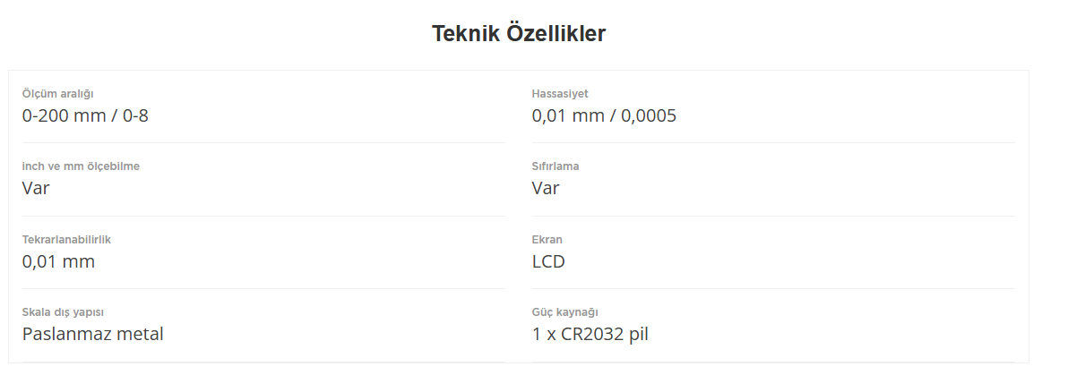 - Yüksek ölçüm hassasiyeti (0.01 mm)