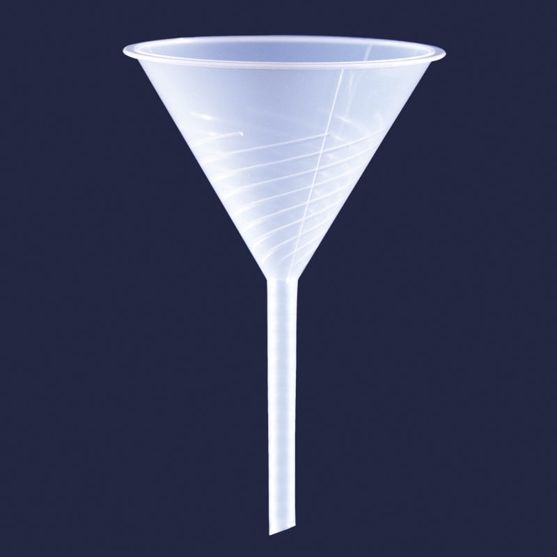 | ISOLAB Huniler P.P yivli; Şeffaf ve kalın polipropilenden üretilirler. Özel tasarımları çalışma sırasında geri basınç oluşm asını önler. Huni gövdesi 60° açılı olup huni sapı kısa formludur. |