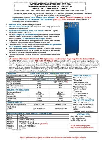 - Her MPMINIPURE SUPER DIA da mes13 Model mikroprosesör elektroniğiyle tam emniyetli çalışma sağlar. Membran durulama fonksiyonuyla membranları temizler.