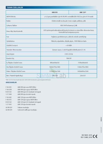 | ≥ 0,3 μm partiküller için % 99,995 verimlilikte iki adet HEPA filtre. | |||||||